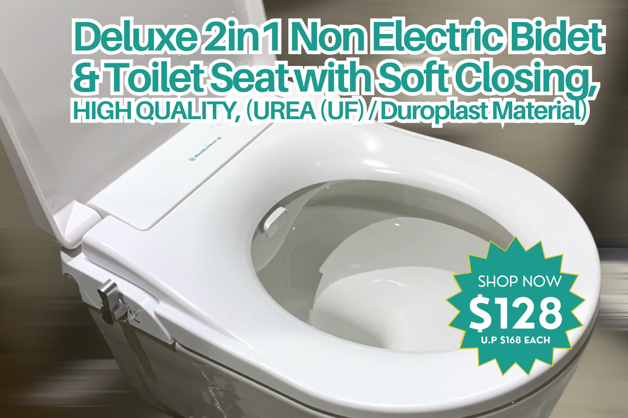 Deluxe 2in1 Non Electric Bidet & Toilet Seat with Soft Closing, HIGH QUALITY, (UREA (UF) / Duroplast Material)